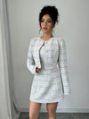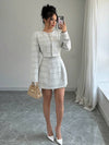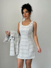 Completo da donna elegante e alla moda con giacca corta e vestito senza maniche