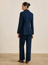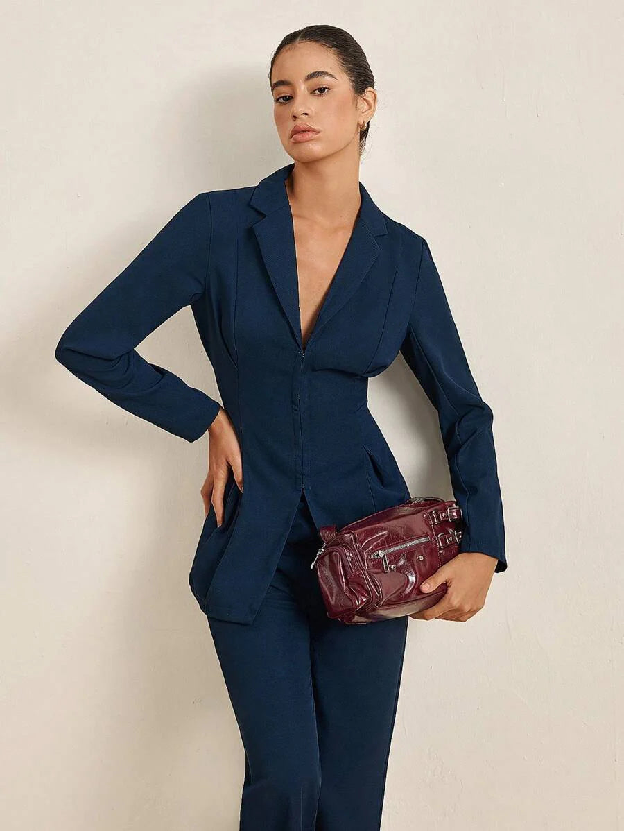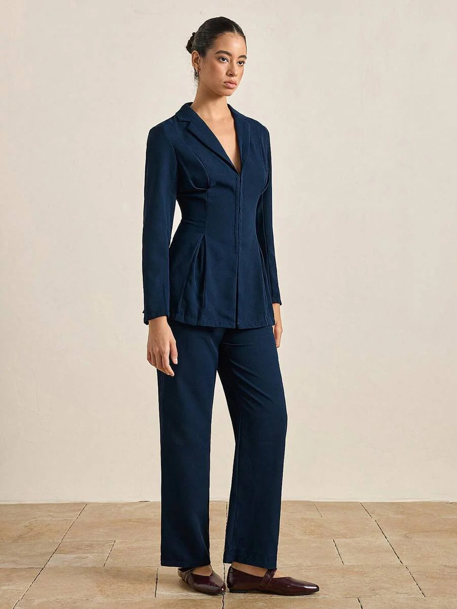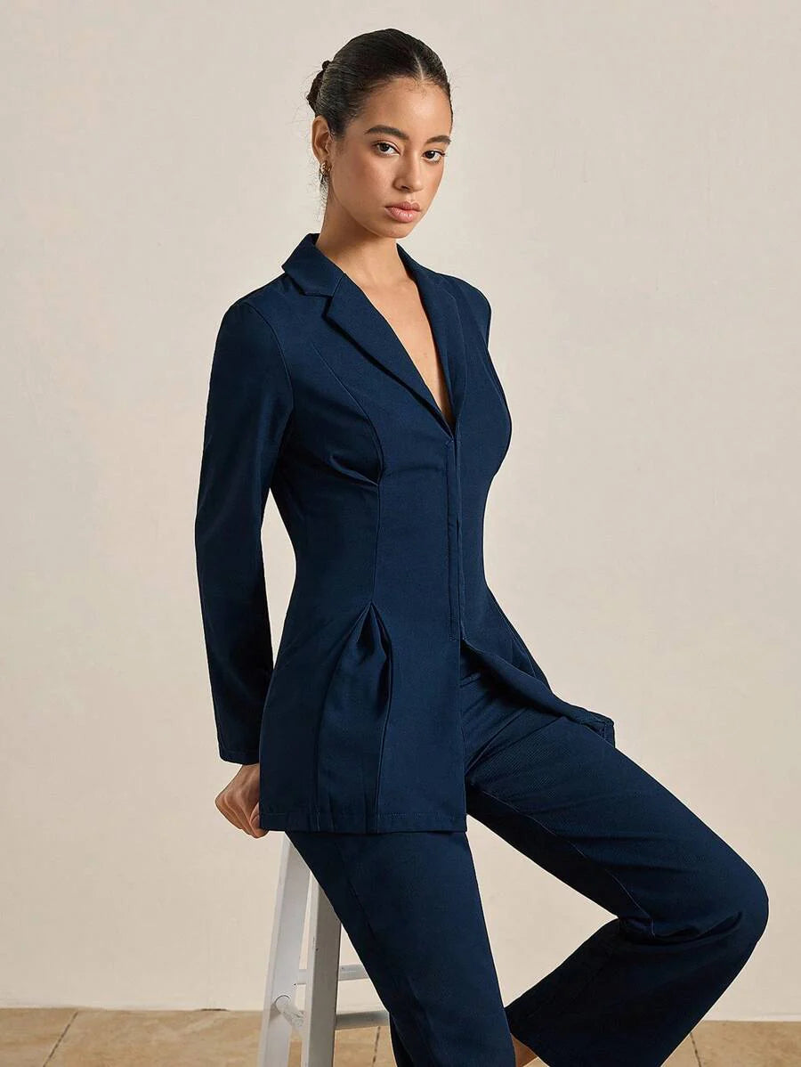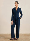 Set da 2 pezzi per donne, composto da blusa a maniche lunghe con colletto piatto di colore unito e pantaloni casual