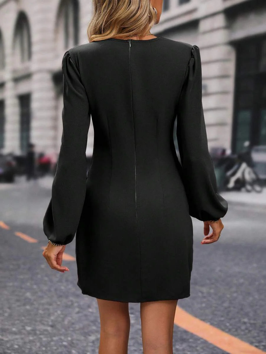 Dettaglio : avvolgenteTipo di manica : Maniche BishopStile : EleganteDettaglio : PlissettatoLinea vita : Vita altaDettaglio : NodoFoderato per un maggiore calore : NonTipo di motivo : Colore unicoScollatura :...
