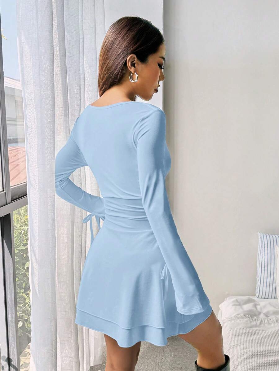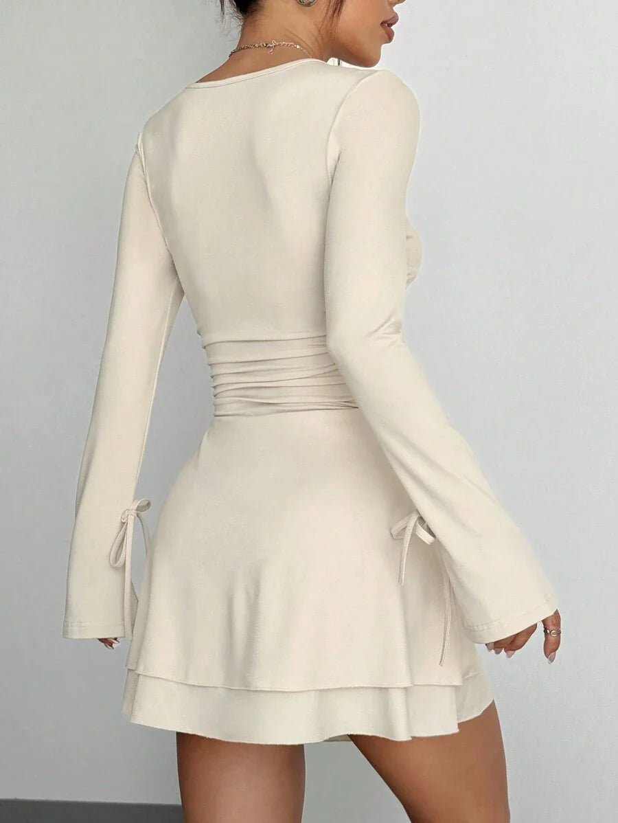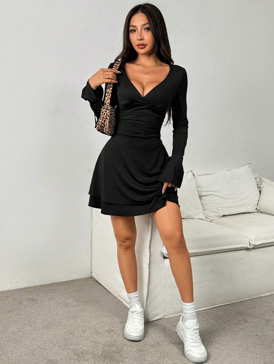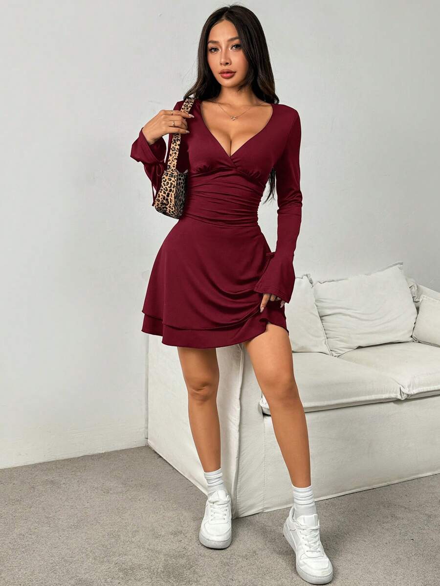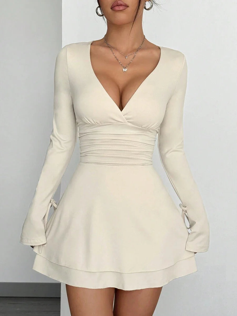 Abito a maniche lunghe da donna con scollo a V e vita stretta