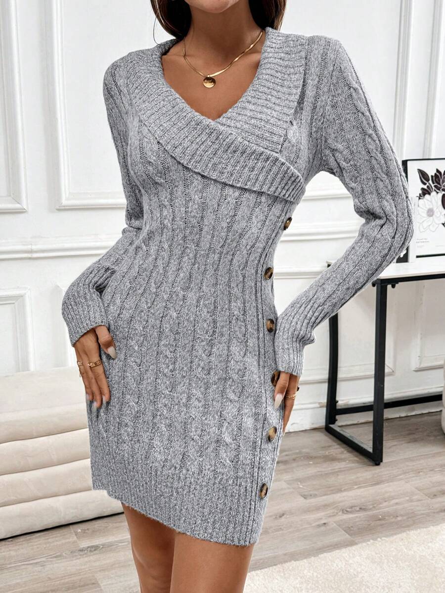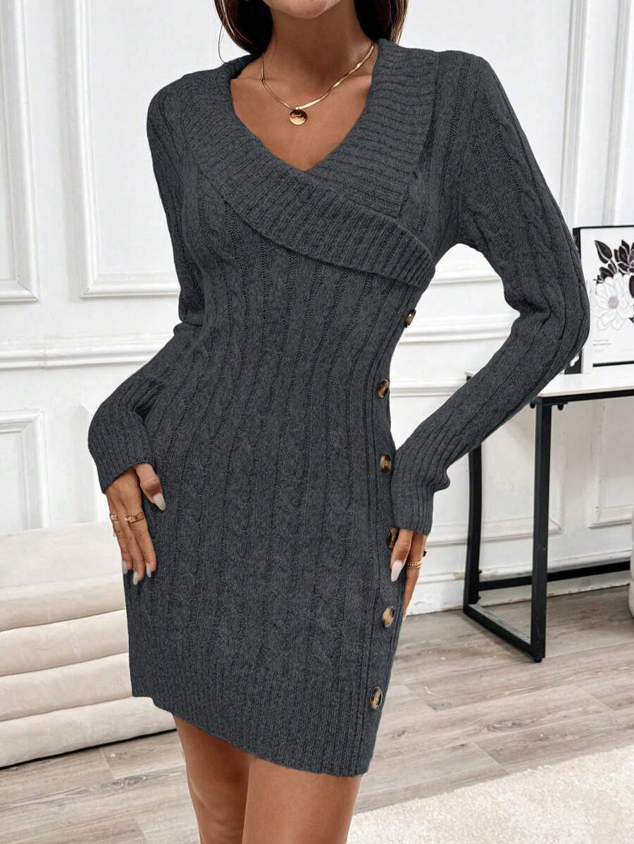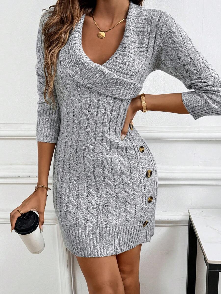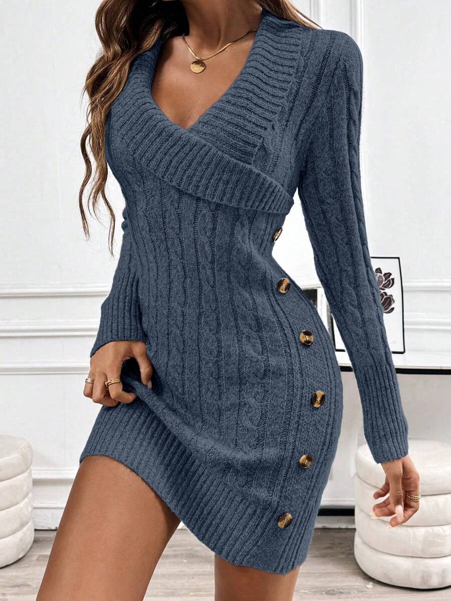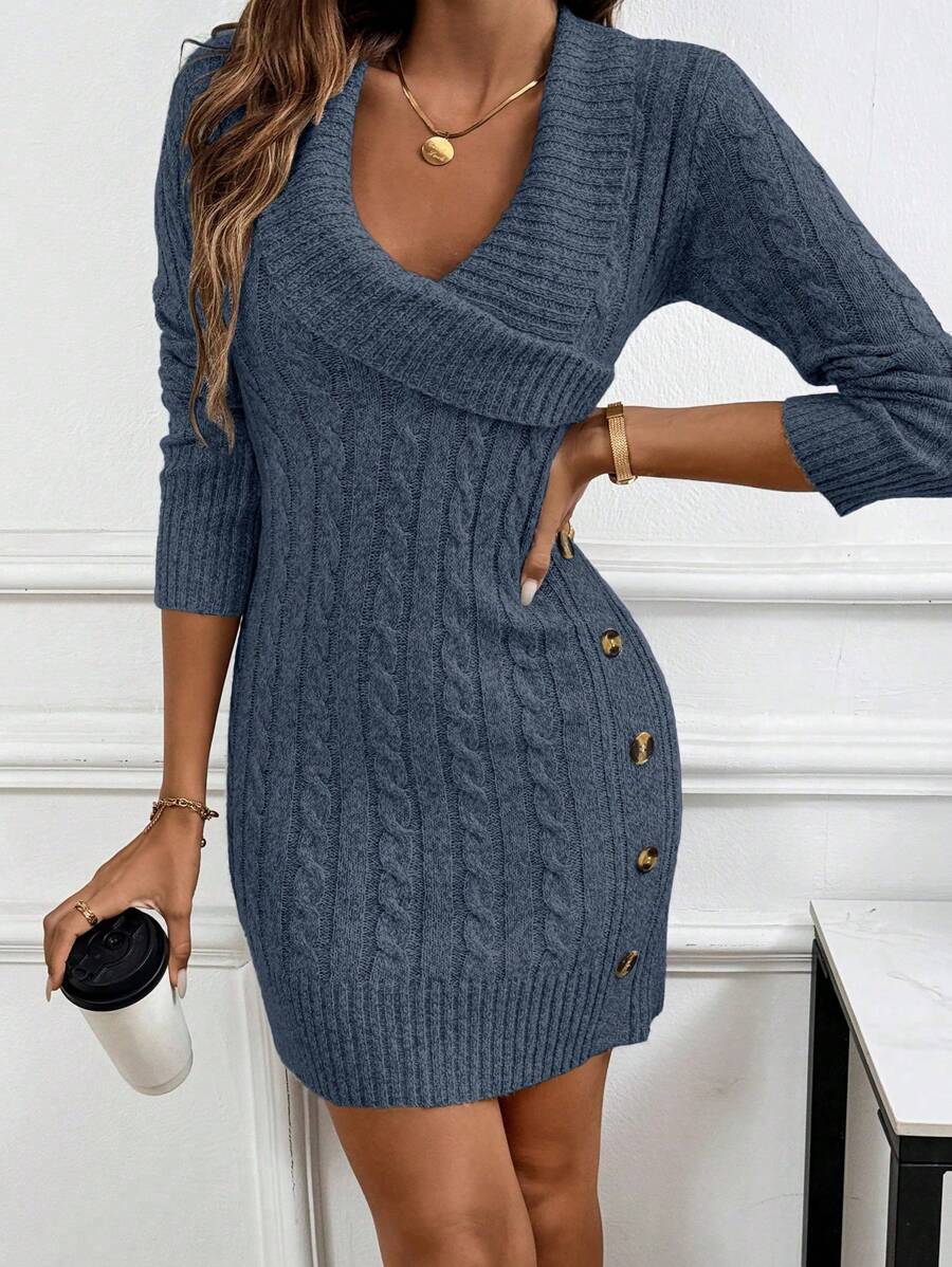 Abito maglione comodo con collo e maniche lunghe in maglia
