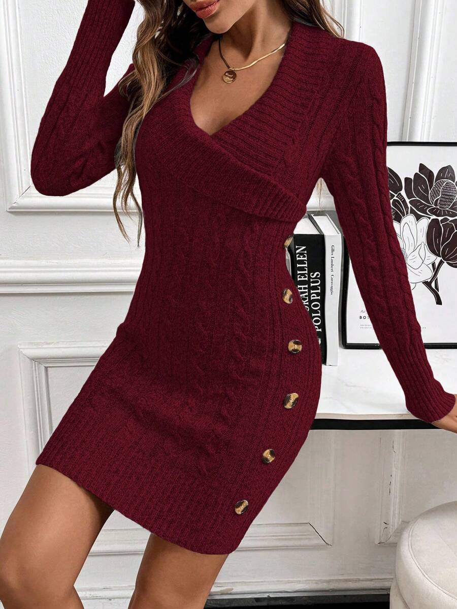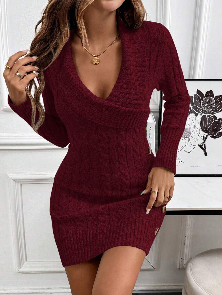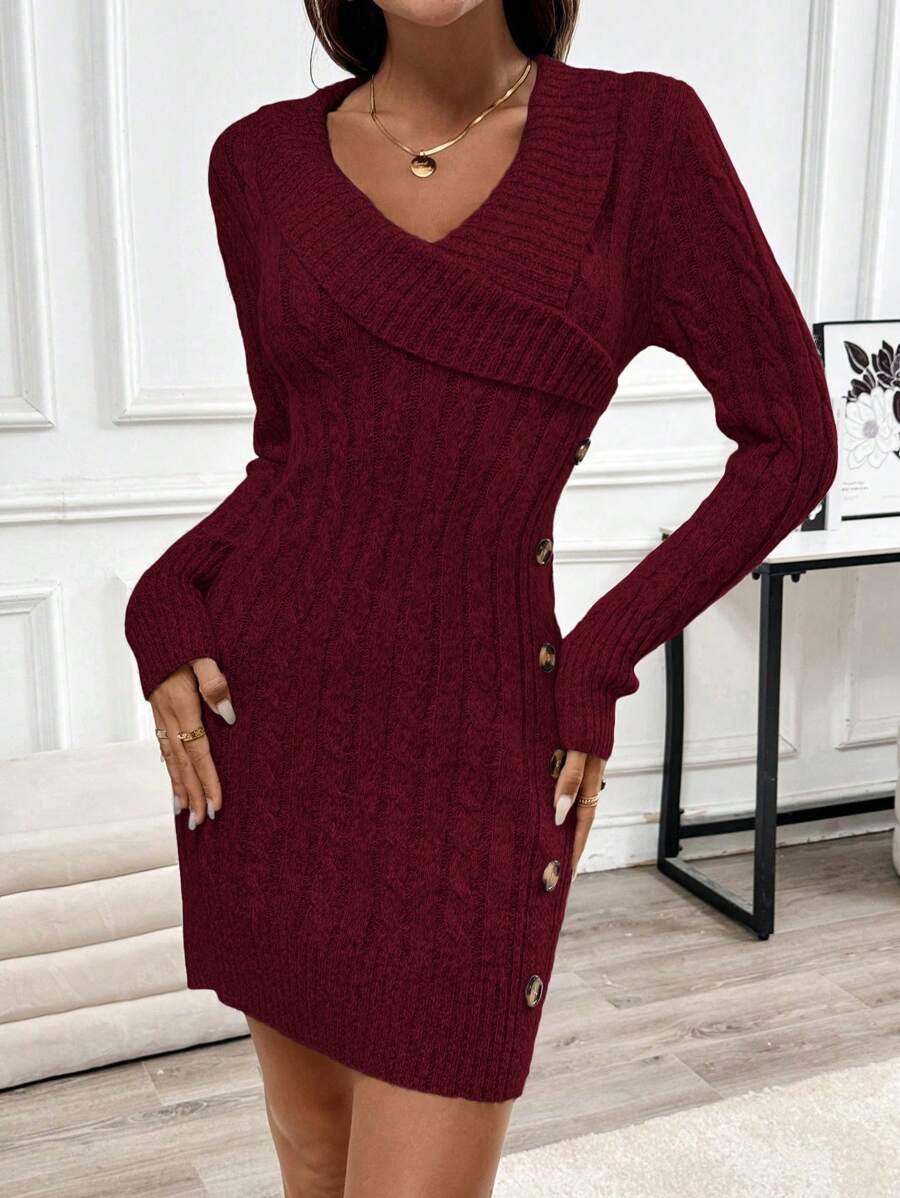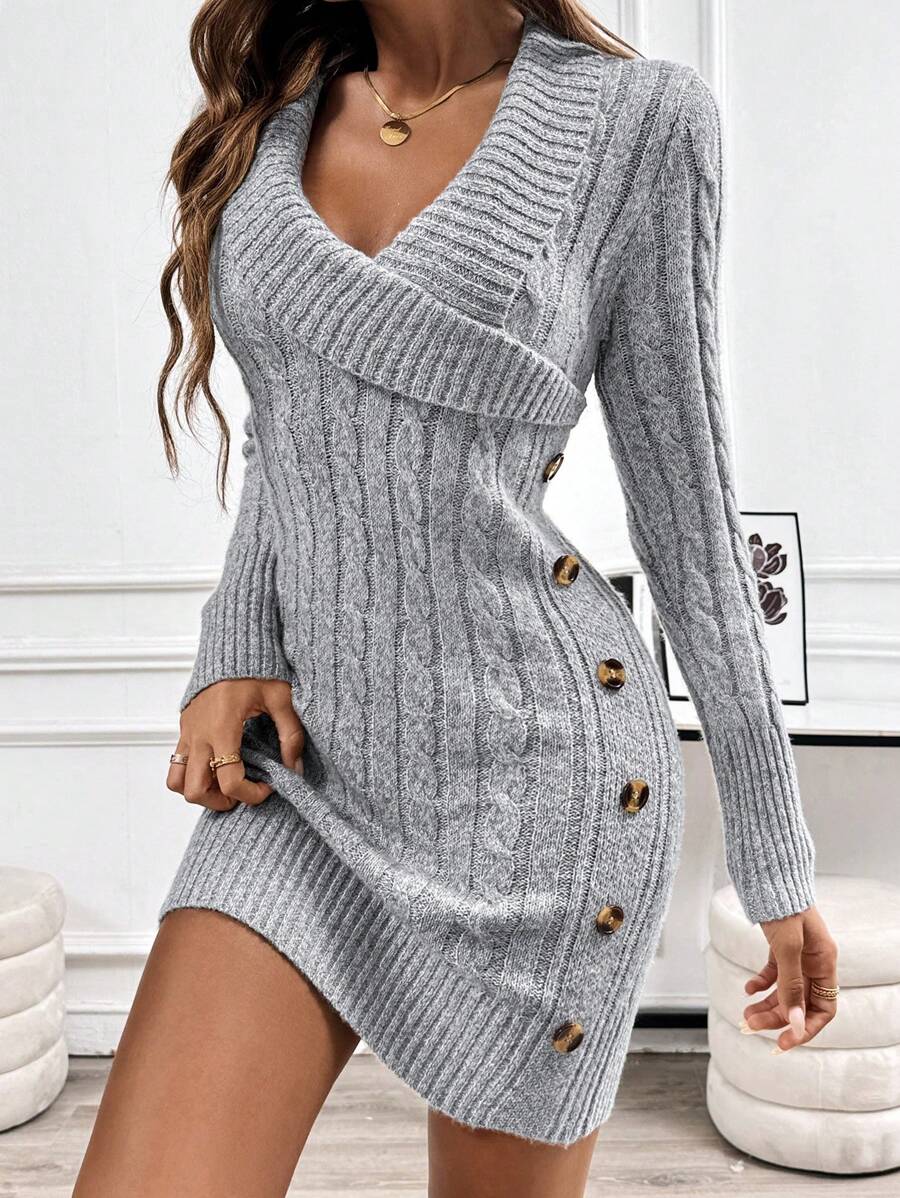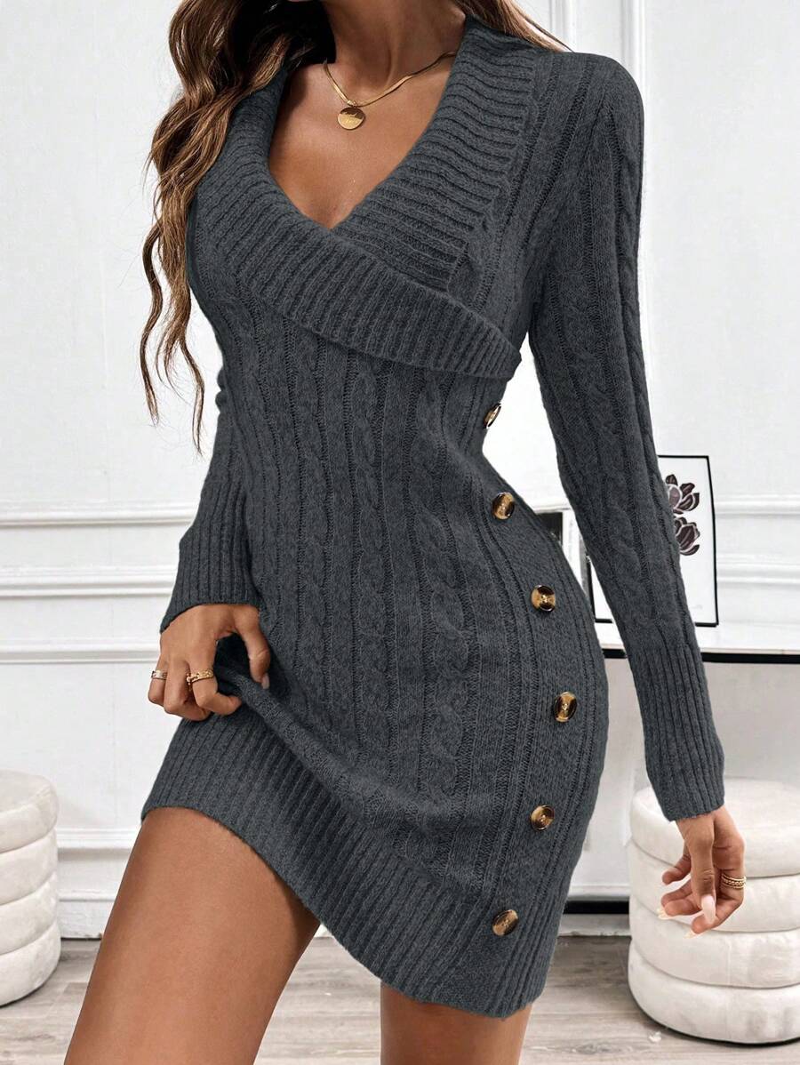 Abito maglione comodo con collo e maniche lunghe in maglia
