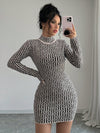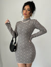 Abito maglione elegante aderente a maniche lunghe con colletto alto e motivo geometrico