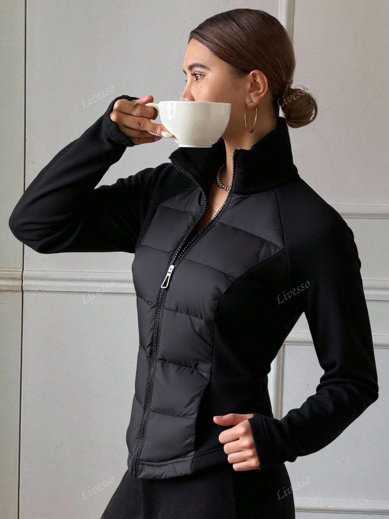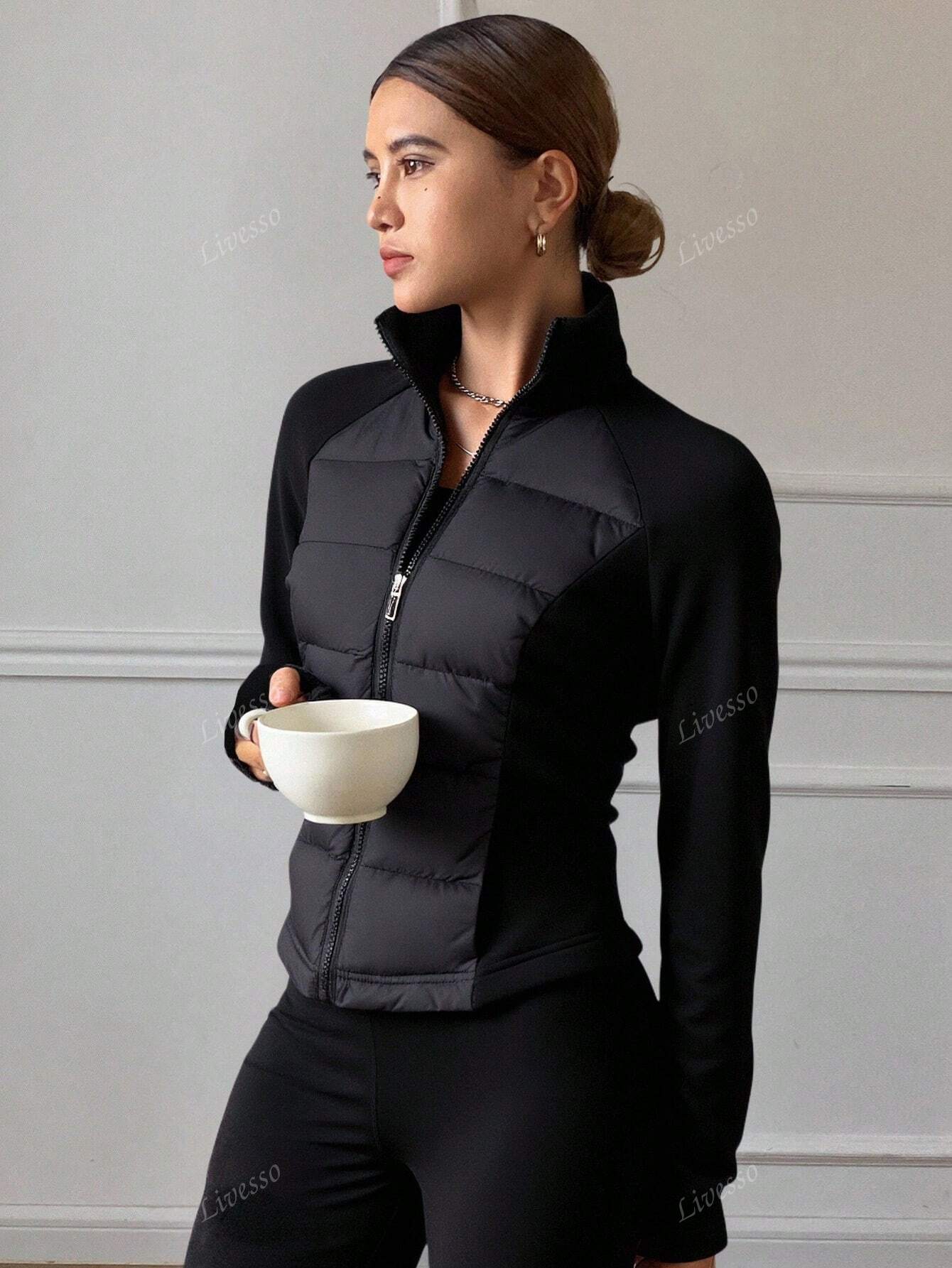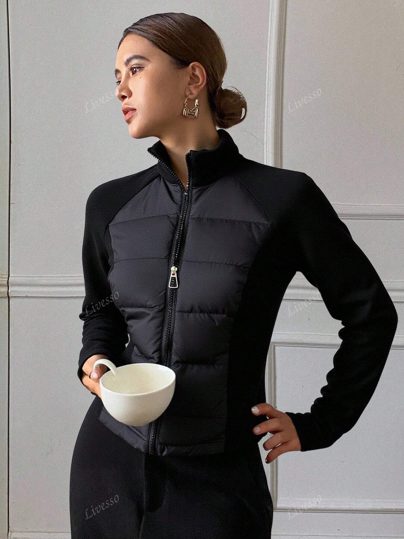 Cappotto imbottito con maniche raglan e chiusura lampo