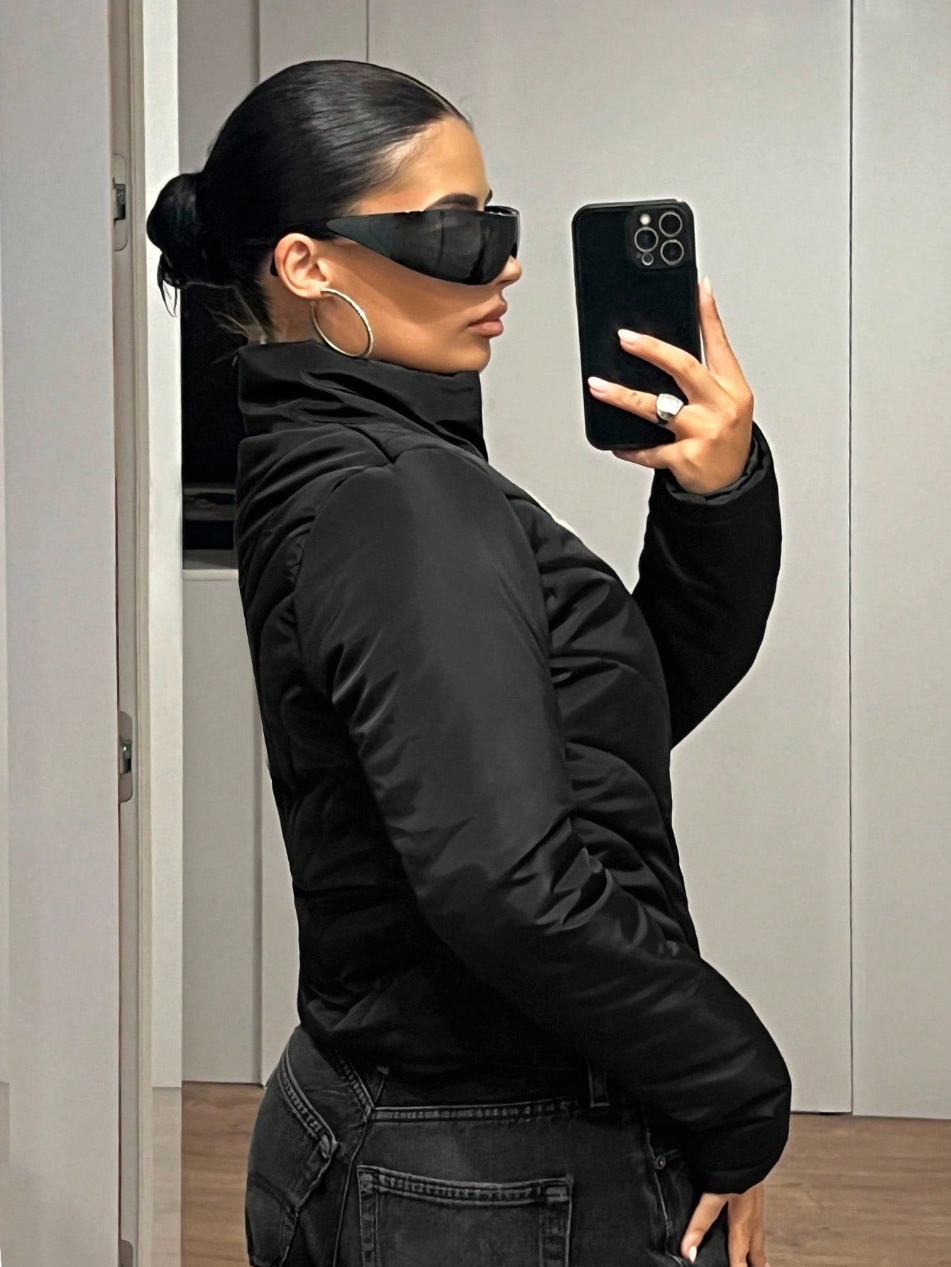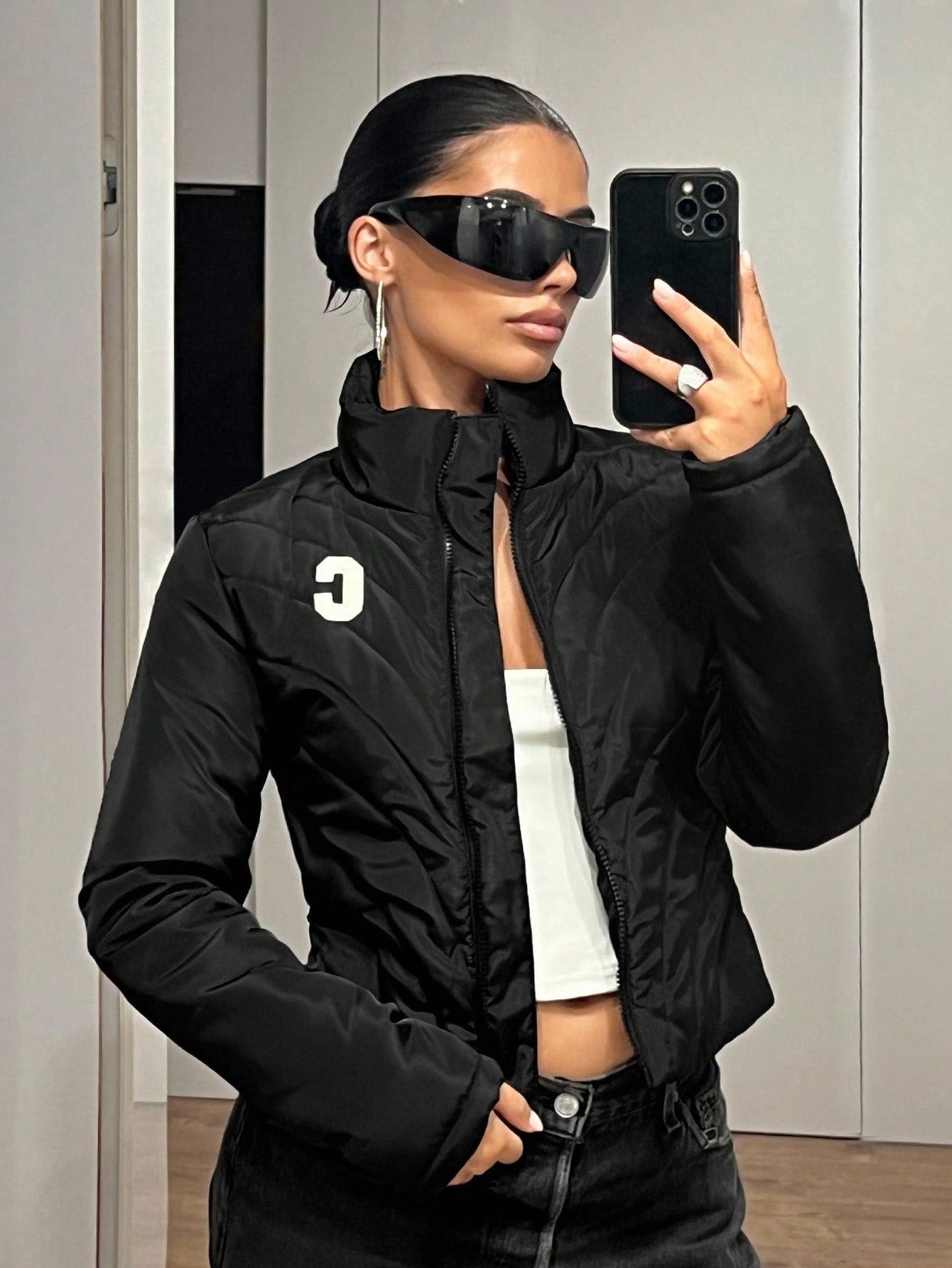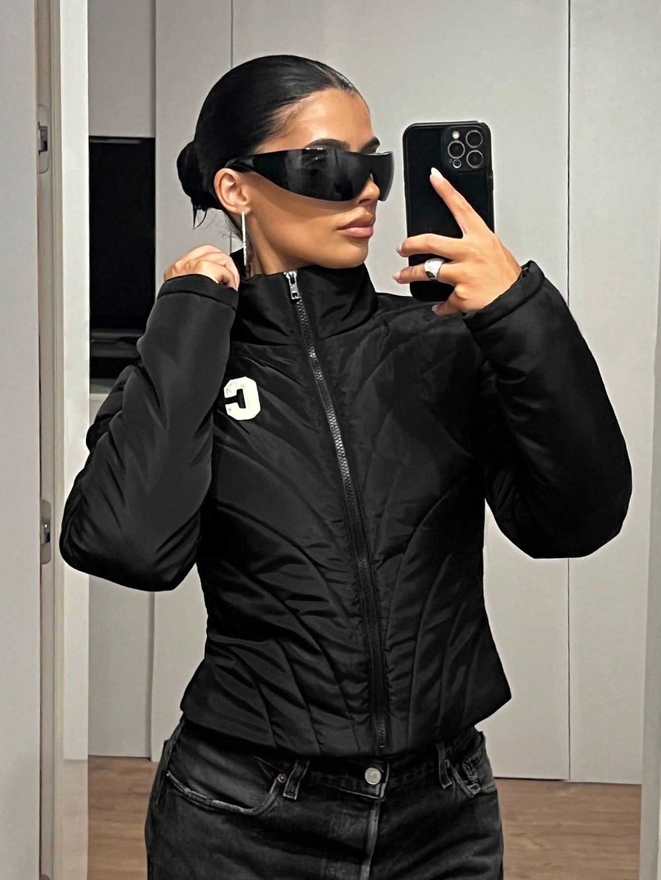 Cappotto imbottito da donna, slim fit, sexy, nero, con decorazione a righe trapuntate