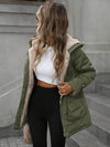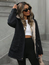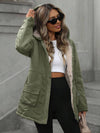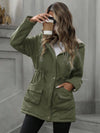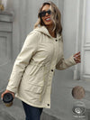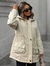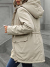Cappotto invernale alla moda, ampio e casual, con cappuccio, con chiusura lampo e coulisse in vita, imbottito