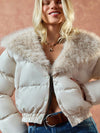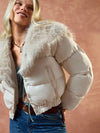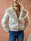 Cappotto invernale da donna con colletto in pelliccia finta