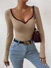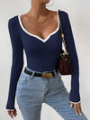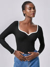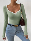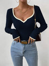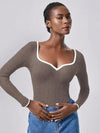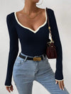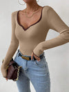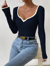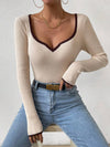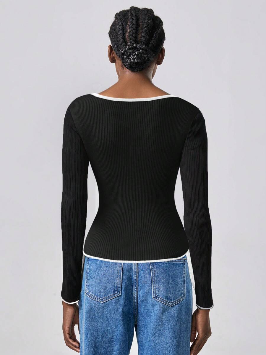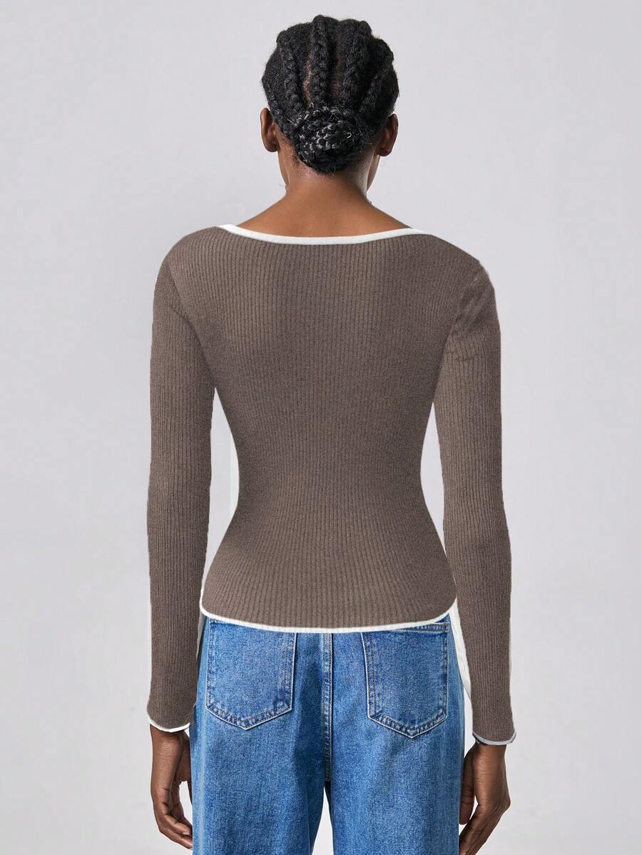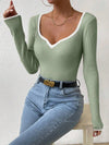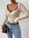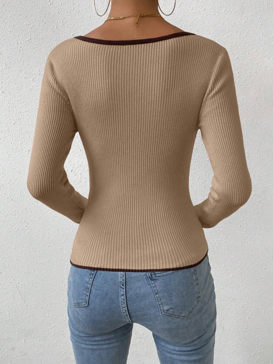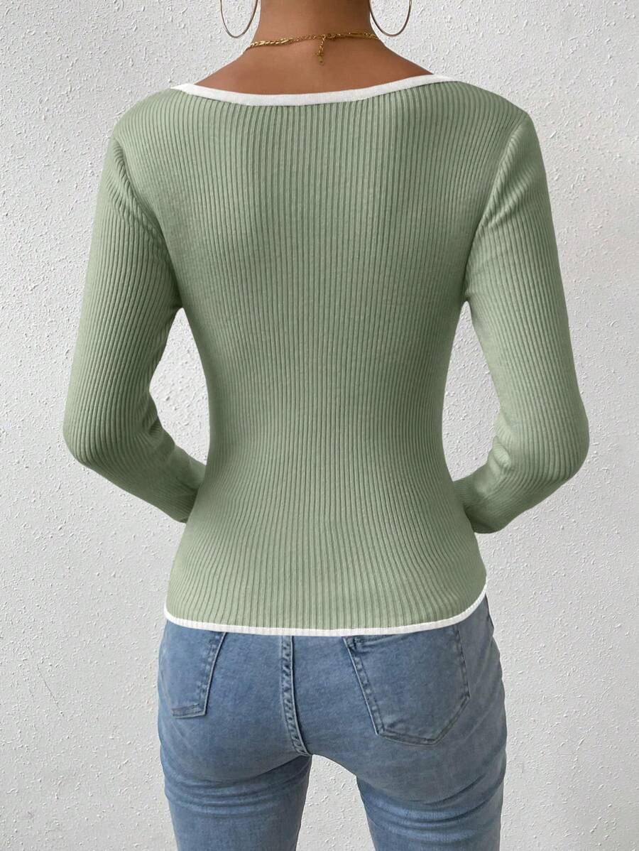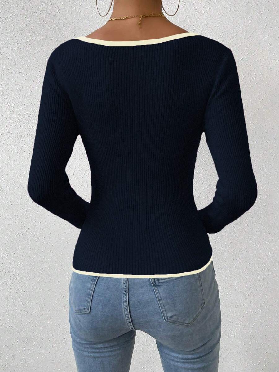 Maglione da donna a costine con scollo a cuore, stile pullover