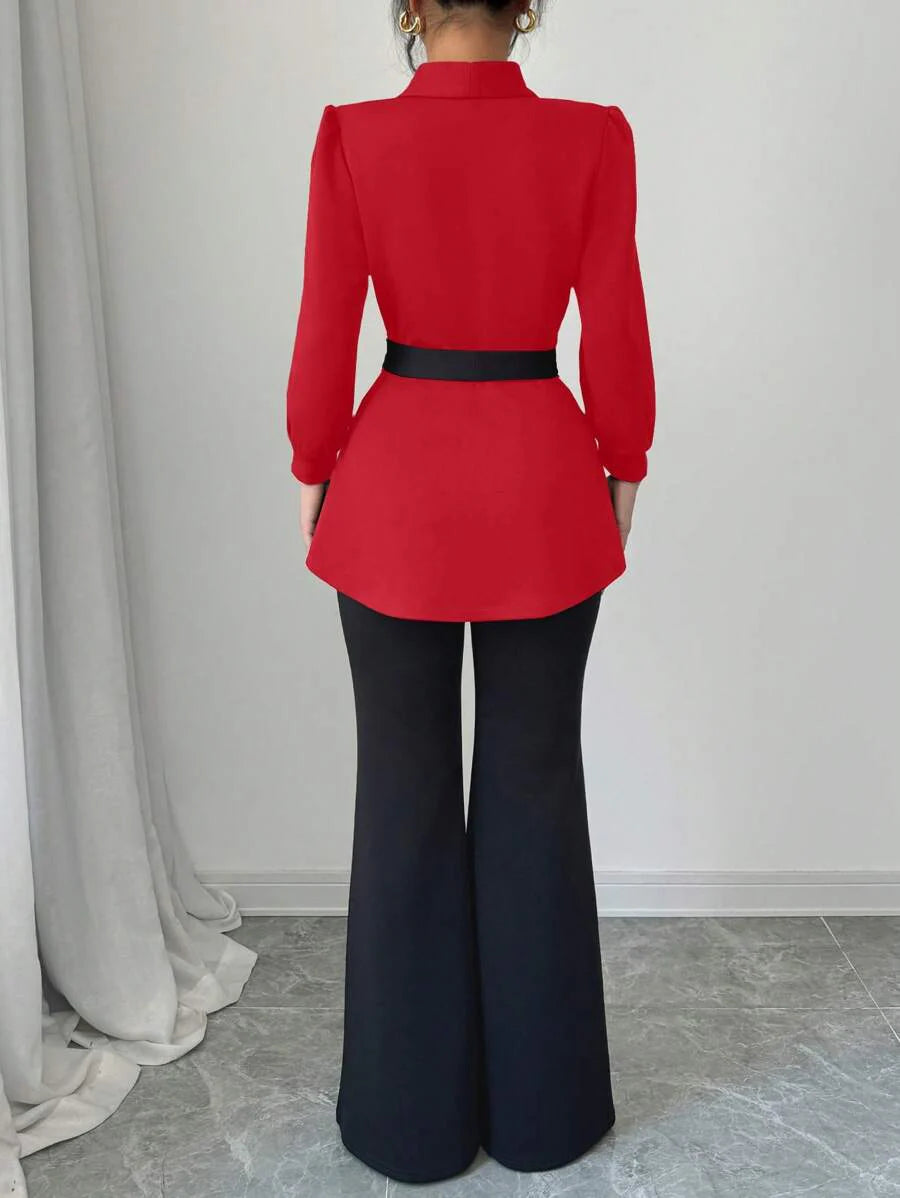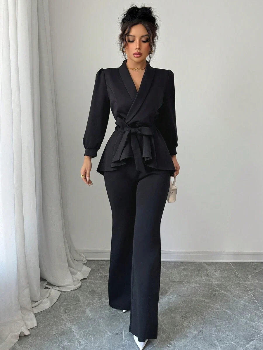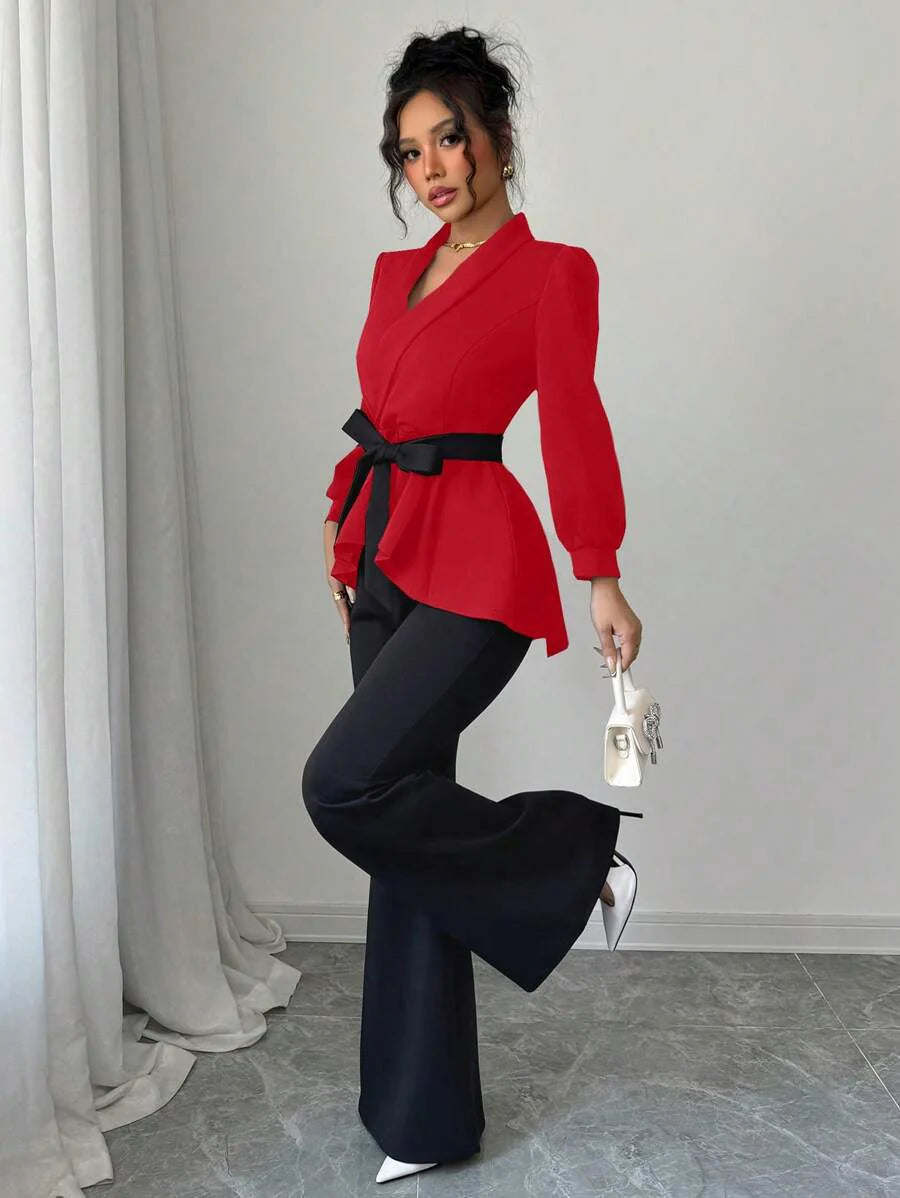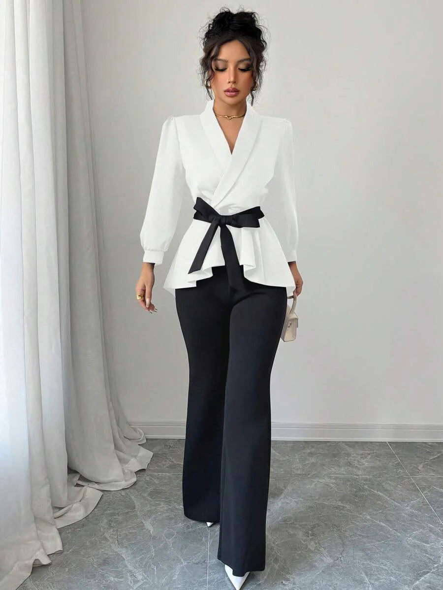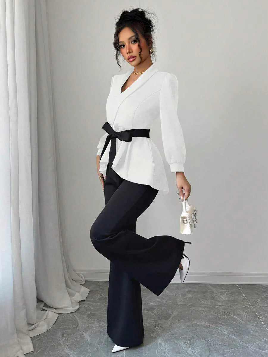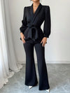 Set Elegante tailleur da donna stile ufficio con giacca a maniche a lanterna e pantaloni a gamba ampia in colore tinta unita