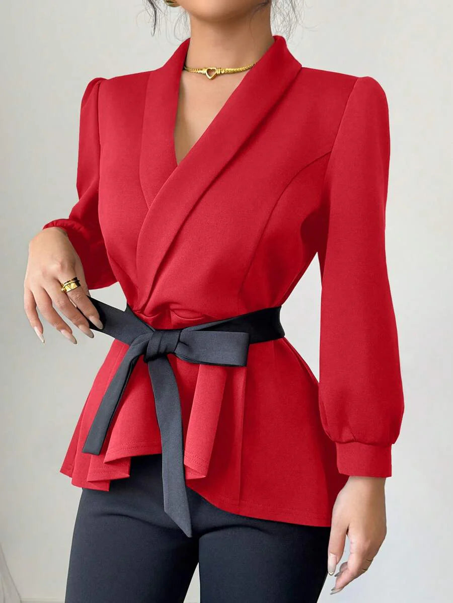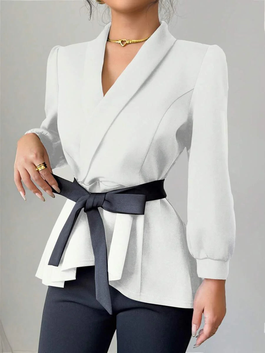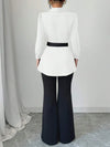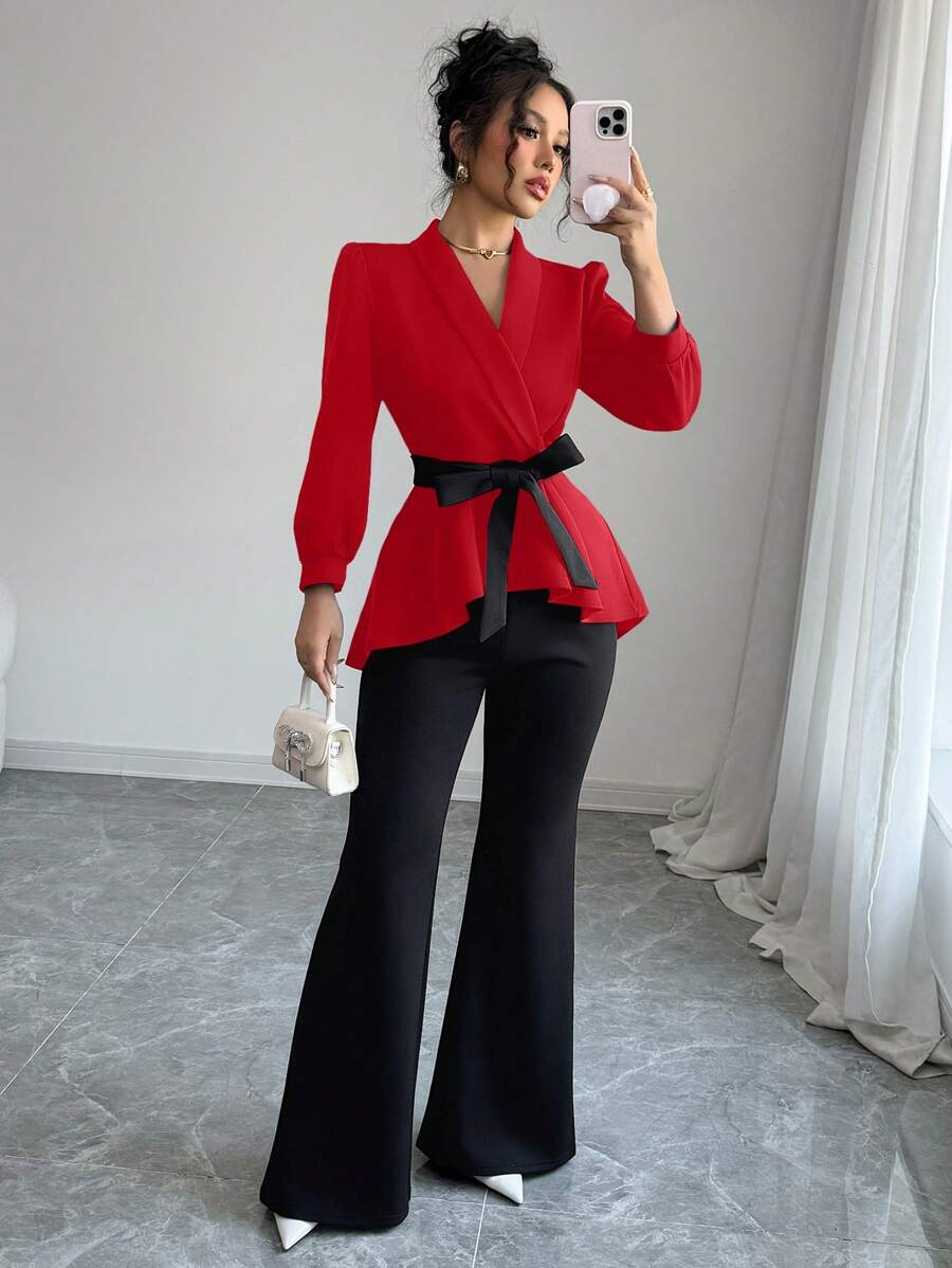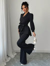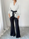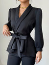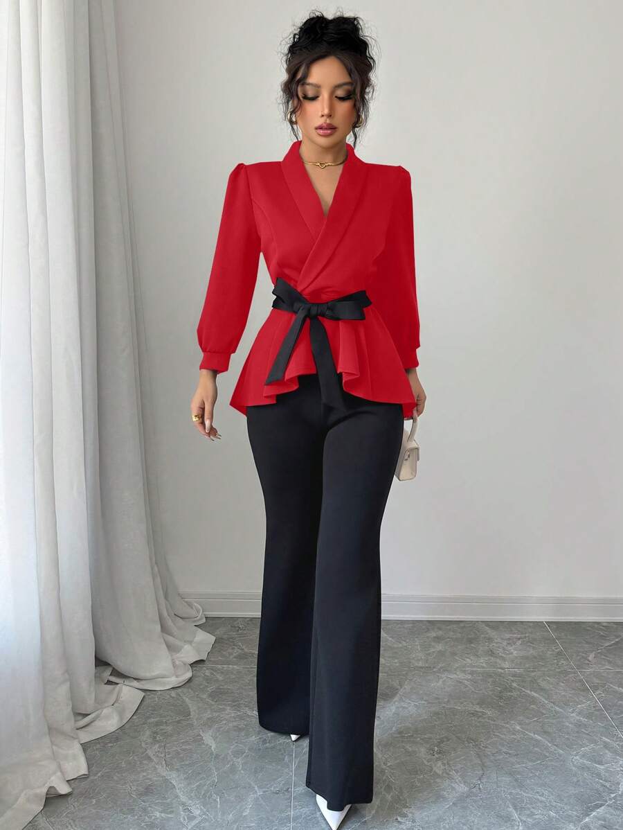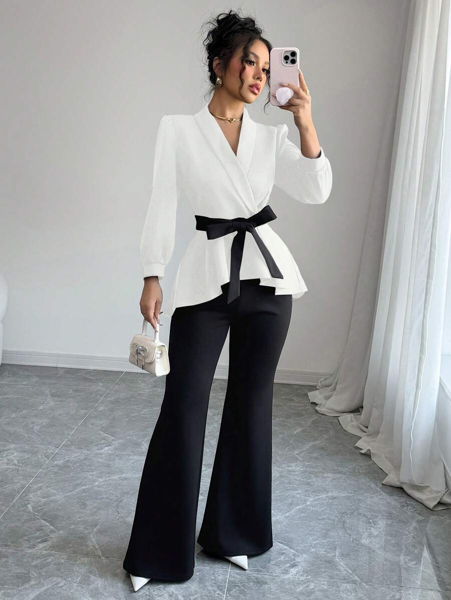 Set Elegante tailleur da donna stile ufficio con giacca a maniche a lanterna e pantaloni a gamba ampia in colore tinta unita